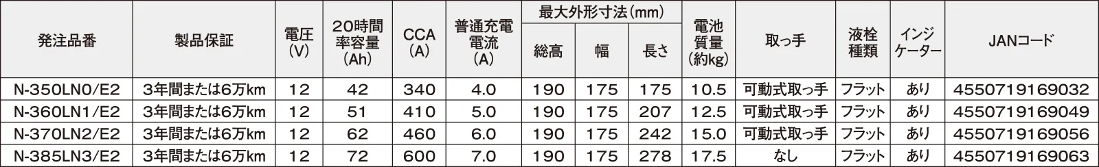 LN0サイズがラインナップに加わり、大容量だから実現できるあんしん・安全なカーライフを国内EN規格バッテリー搭載車に提供します。