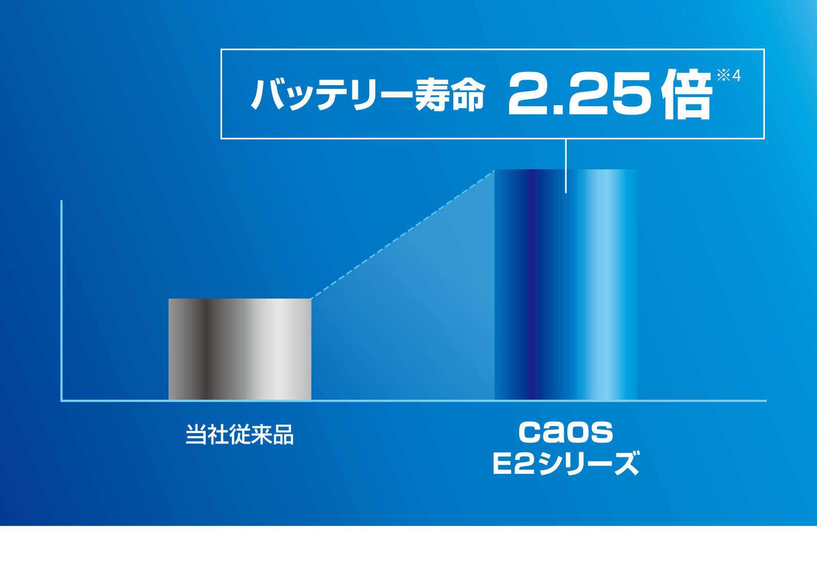 当社ノーマル品と比較して、バッテリー寿命2.25倍※4を達成し、長期間にわたって安定した電力供給を実現します。