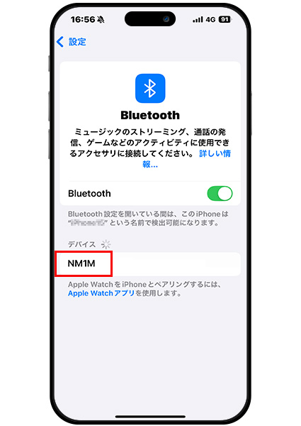iPhone側のBluetoothをONにして "NM1M"を選択する。