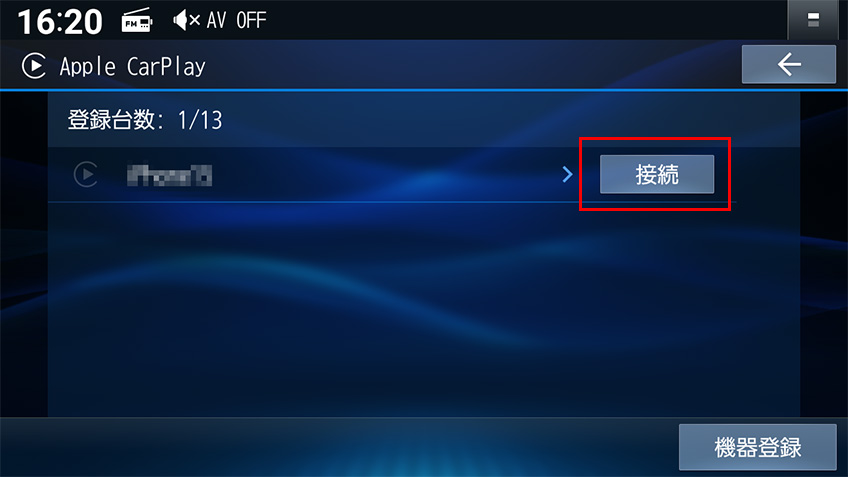 登録済みのiPhoneがある場合、iPhone一覧が表示されるので、接続したいiPhoneを選択して「接続」を押してください。iPhoneを新規登録したい場合は「機器登録」を押してください。