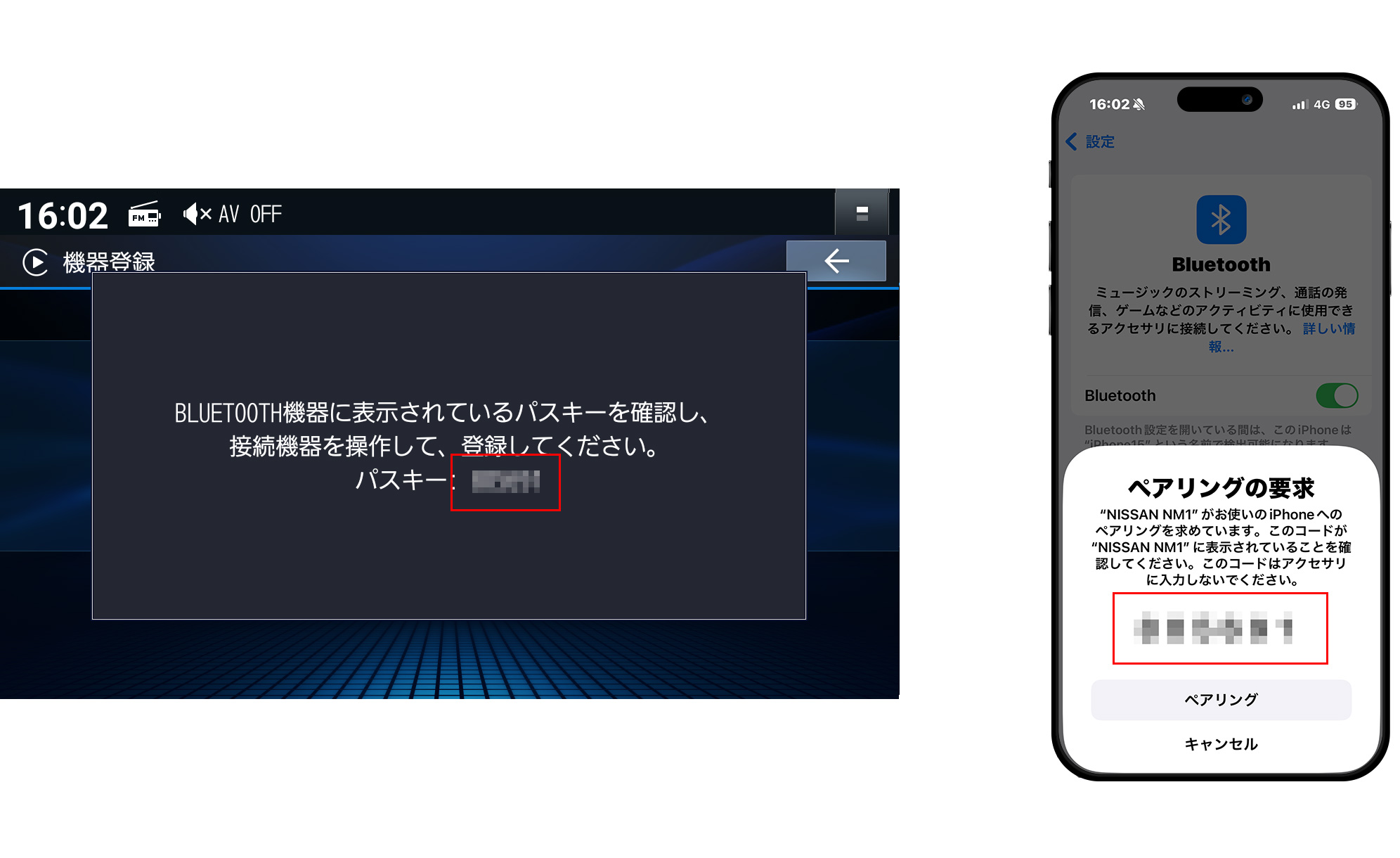 iPhoneを新規登録する場合、ペアリング認証画面が表示されるので番号を確認し、ペアリングする。