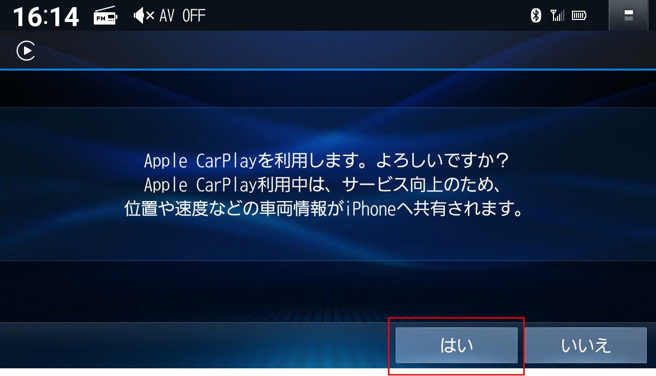 Apple CarPlay の使用確認画面が表示された場合は、「はい」を選択する