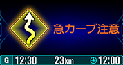 カーブや分岐点、合流地点に近づくと地図上に標識マークを表示。事故多発地点ではマークに加え音声案内を併用して注意を促します。ドライブを楽しむため、ストラーダから安全運転のお願いです。