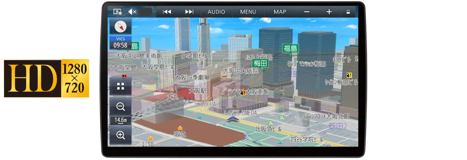 HD画質を最大限に活かした、繊細でリアルな地図を搭載。