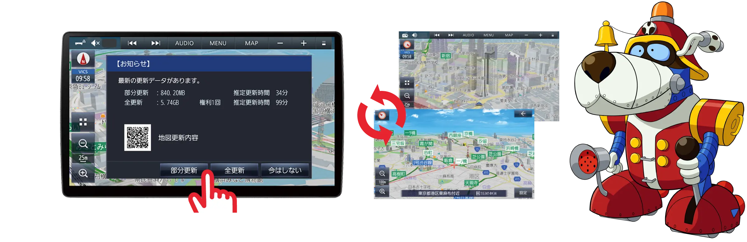 全地図更新は期間中1回、部分地図更新は2ヵ月毎に1回の更新が可能です。 - データ提供期間:Fシリーズは2029年12月末まで、CAシリーズは2029年7月末までを予定。