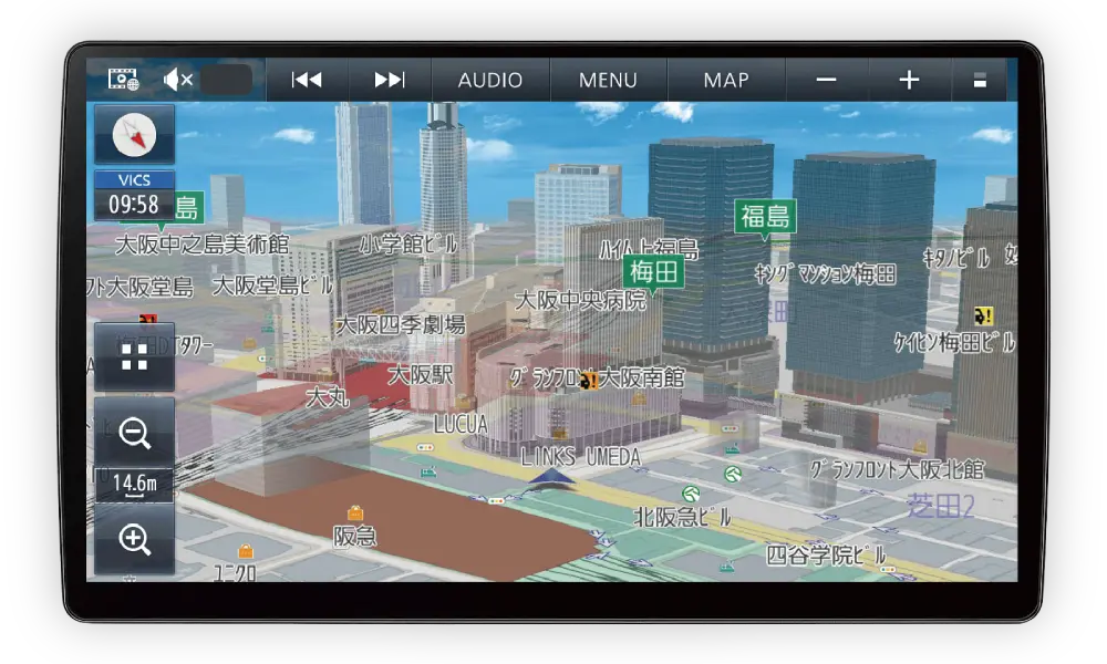 実物に迫るよりリアルな表現で運転中でも見やすく安心です。