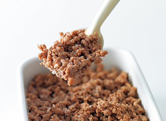 【万能肉そぼろをつくる】フッ素樹脂加工のフライパンを中火で熱し、ひき肉を入れて炒める。肉の色が変わり、ポロポロになったらAを加えて弱火にし、水分がなくなるまで炒める。