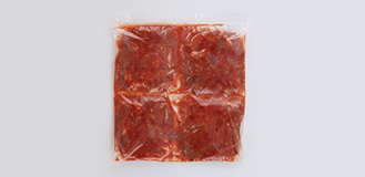 たれに肉を入れてからませる。別の冷凍用保存袋に肉を重ならないように1人分(3切れ)ずつ並べる。容器に残ったたれを写真のように袋に入れ、肉になじませ密閉する。金属トレーなどにのせて平らに冷凍する。