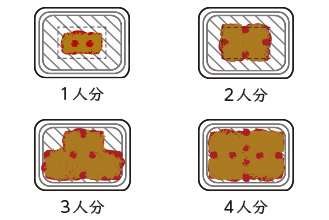 【焼く】 図のように、グリル皿へ1人分(3切れ)ずつ肉を重ならないように並べ、残ったたれを上からかける。 その上に野菜を広げ、最後にチーズをかけて上段に入れる。