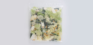 【冷凍する】 ジッパー付き冷凍用保存袋大(28×27cm)に、水分をふき取った野菜を入れて平らに広げ、金属トレーなどにのせて冷凍する。
