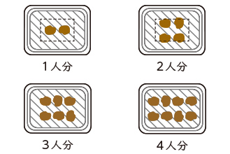 皮目を上にして図のようにグリル皿に並べ、上段に入れる。