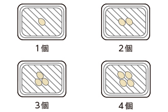 グリル皿を上段に入れ、図のように卵を並べる。(図のように並べることで、うまく固まります)