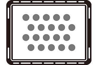 予熱完了後、角皿を上下段に入れる。 【スタート】ボタンを押す。 (加熱開始) 加熱の目安時間 約17分