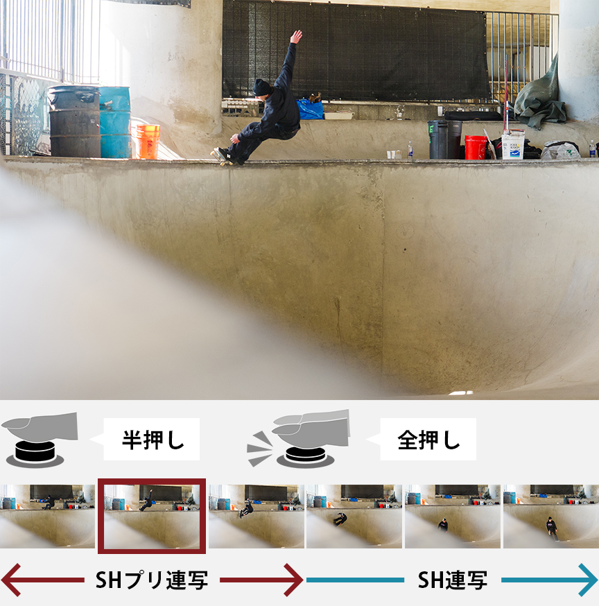 シャッターボタンを全押する前から連写記録を開始する「SHプリ連写」を搭載しました。