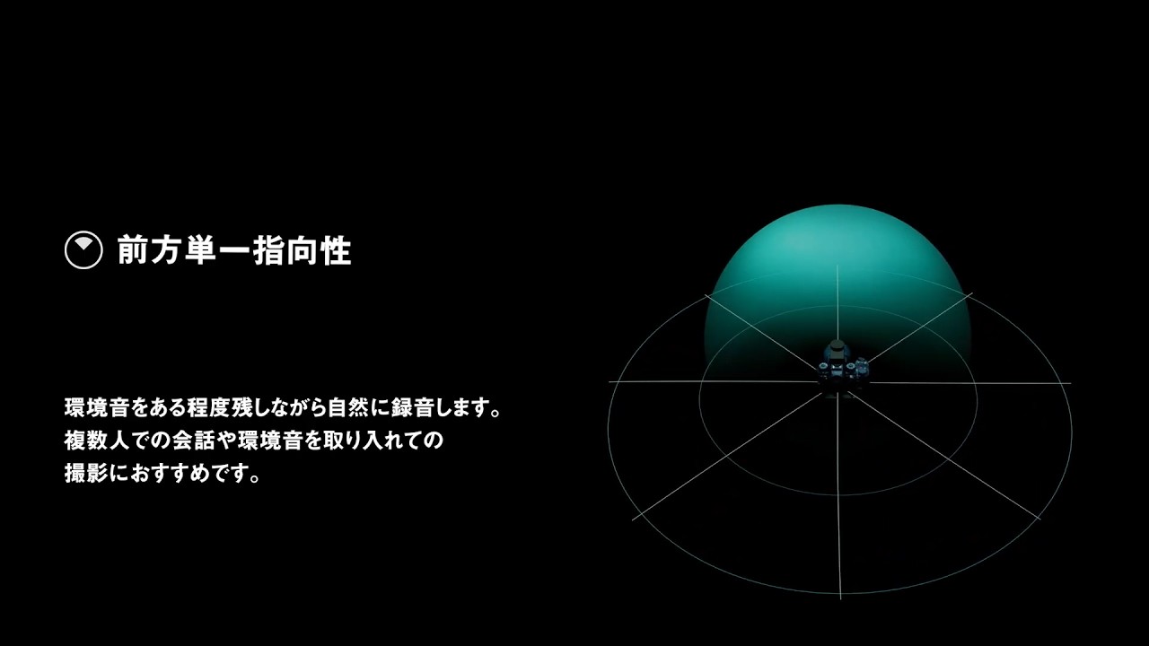 左右や後方の音を抑えつつ、前方の音をクリアに録音します。騒音が大きい場所や残響の多い室内におすすめです。