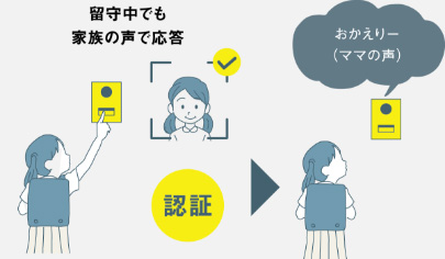 帰宅した子供には、家族が不在でも事前に録音した声で自動応対できます。