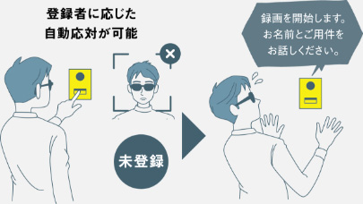 事前に顔情報を登録することで、来訪者に応じて、登録者の名前を読み上げたり、自動応答したりすることができます。