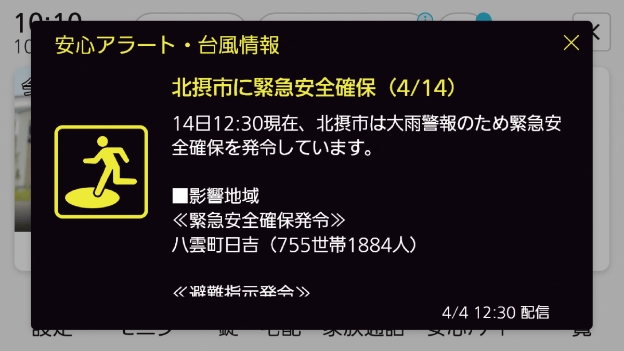 気象警報や災害警戒情報、自治体が発表する避難情報に加え、鉄道・停電・断水などのインフラ情報を、お住いの地域に合わせてお知らせします。