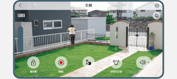 センサーが反応するとスマホ※1に通知し、いつでもカメラ側の様子をモニターしたり、録画映像を確認したりできます。