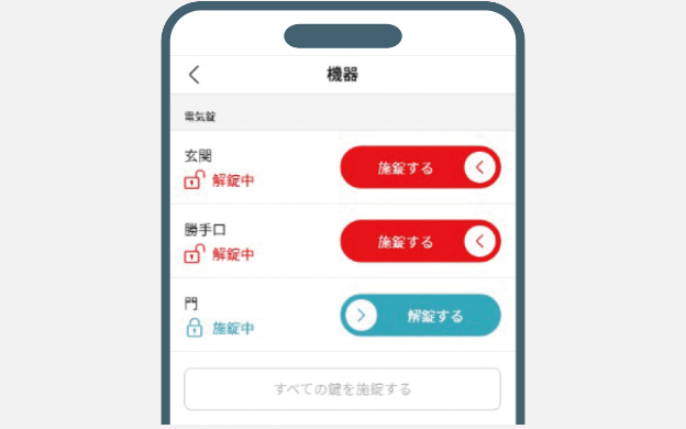 鍵を持たない子供が帰宅しても、外出先からスマホ※1で電気錠の解錠※2が可能。また、鍵をかけ忘れても外出先から施錠もできます。