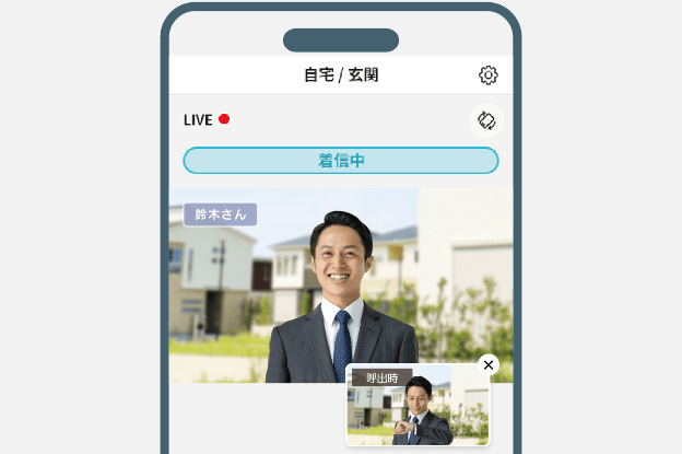 外出先でもスマホ※1でリアルタイムに映像と音声で来客応対できます。