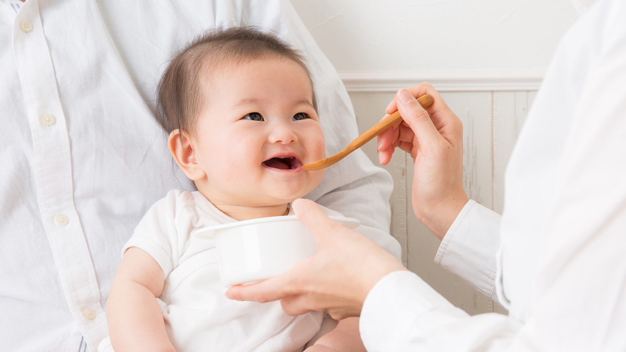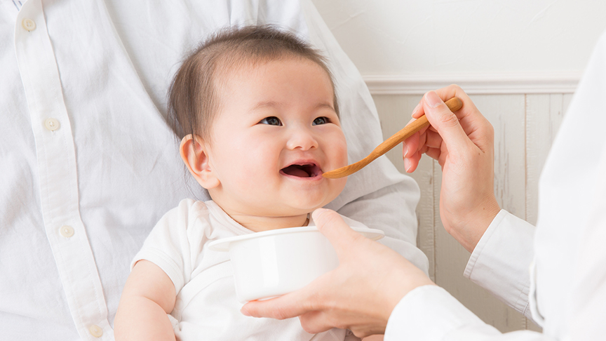 この時期は、なめらかにすりつぶしたつぶしがゆから始め、野菜類、そしてたんぱく質源を1種類ずつ試していきます。