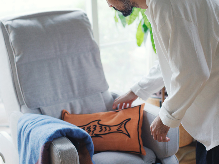 仕事終わりや休日のちょっとした時間に、10分ほどで気軽にマッサージを受けられるのがいいですね。マッサージをしないときも、椅子としてくつろげる。来客のおもてなしにも使えます。