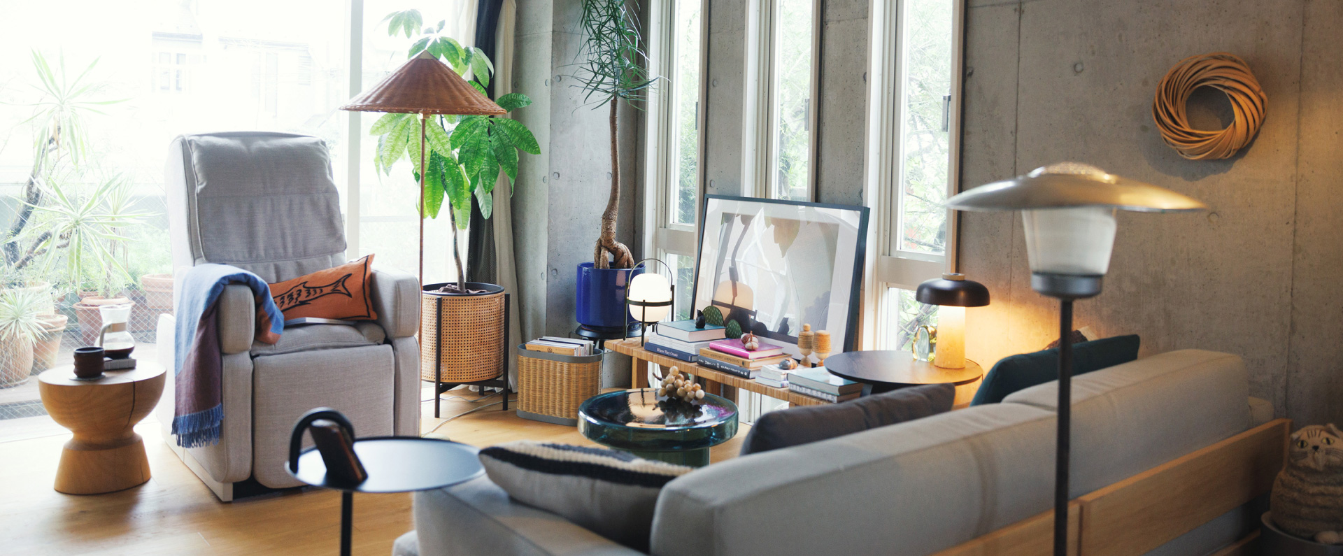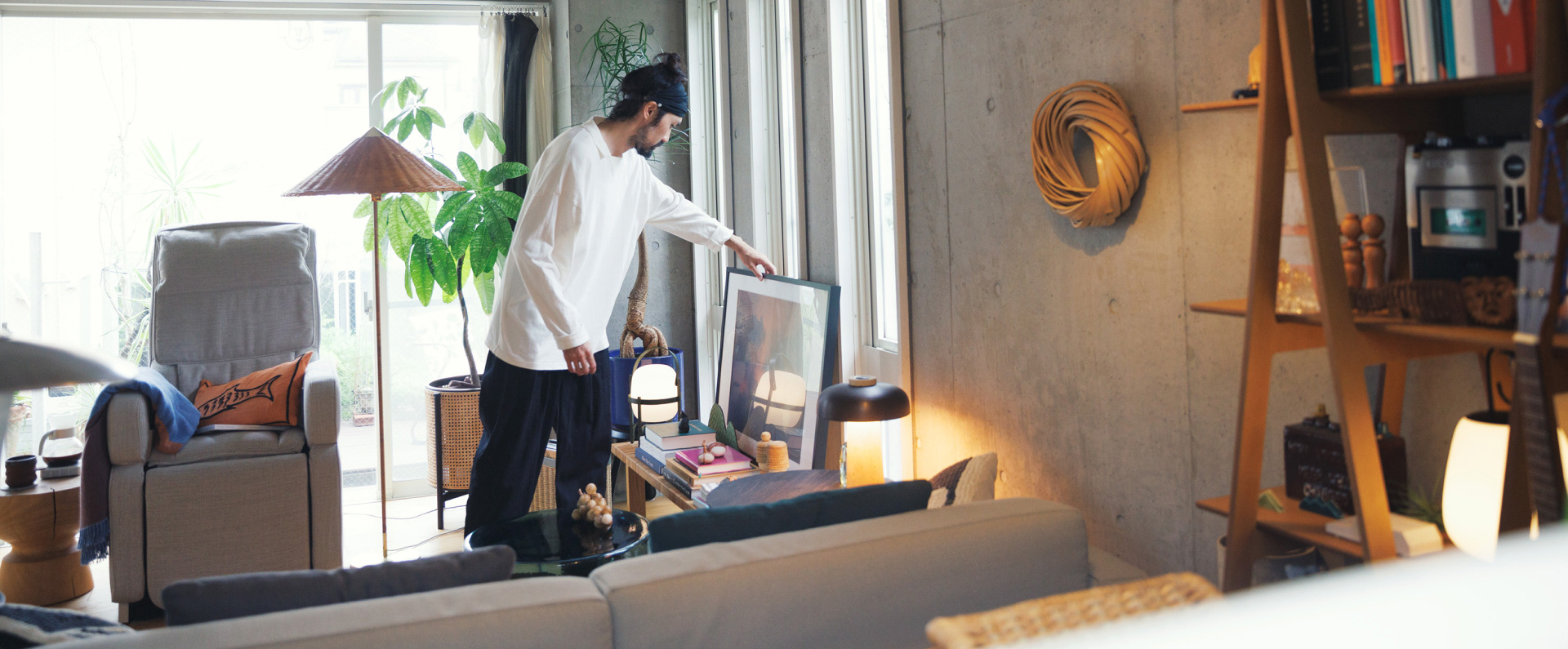 インテリアスタイリストの遠藤慎也さんが、リビングと仕事場でコーディネート