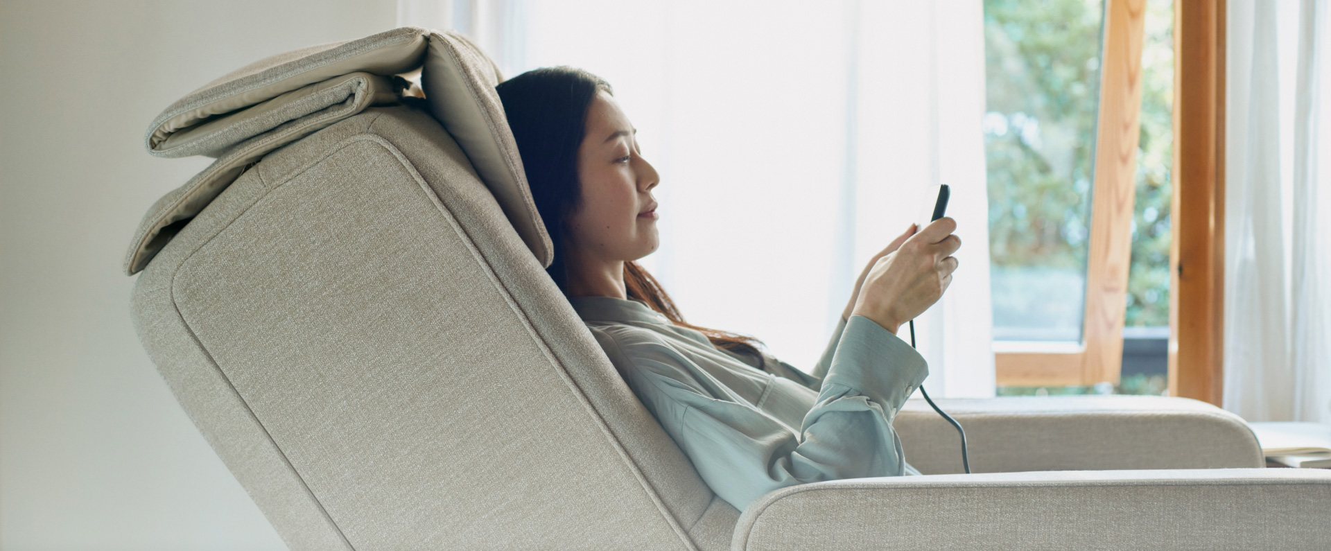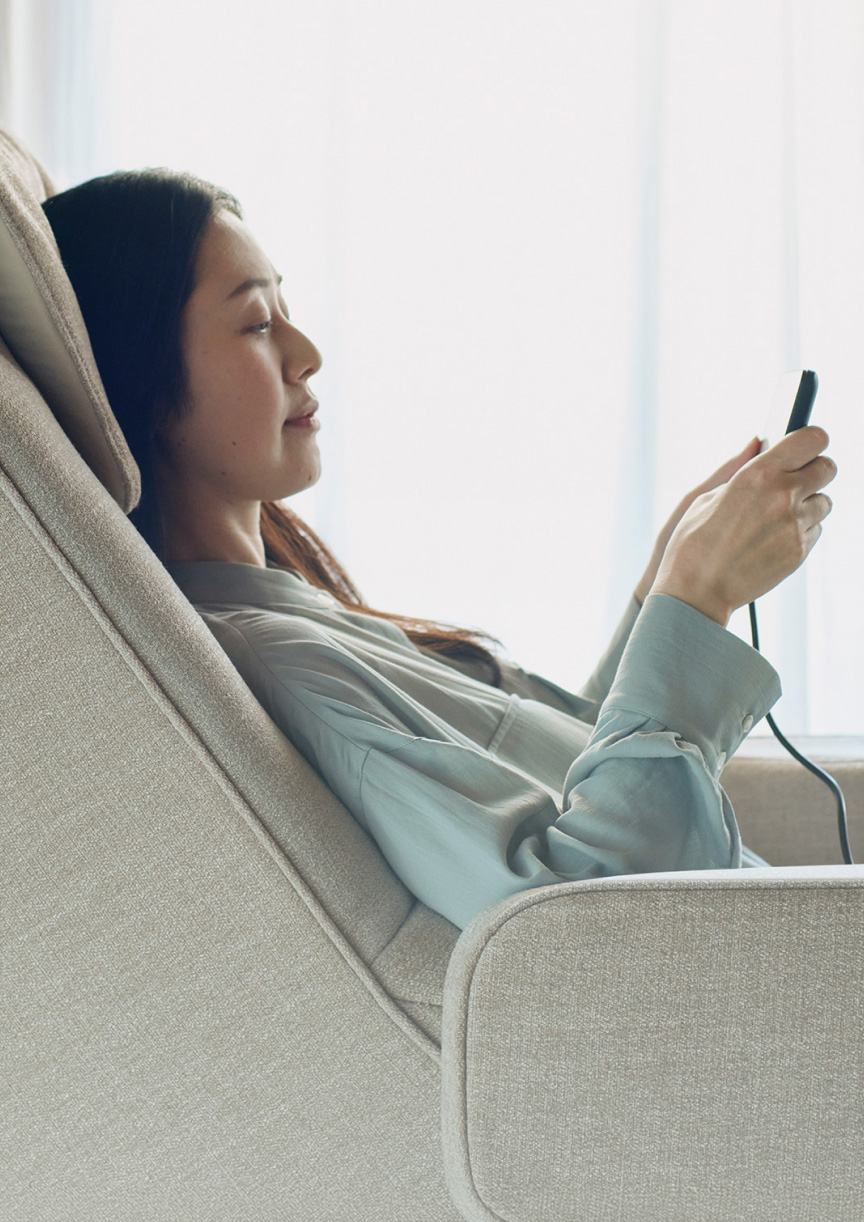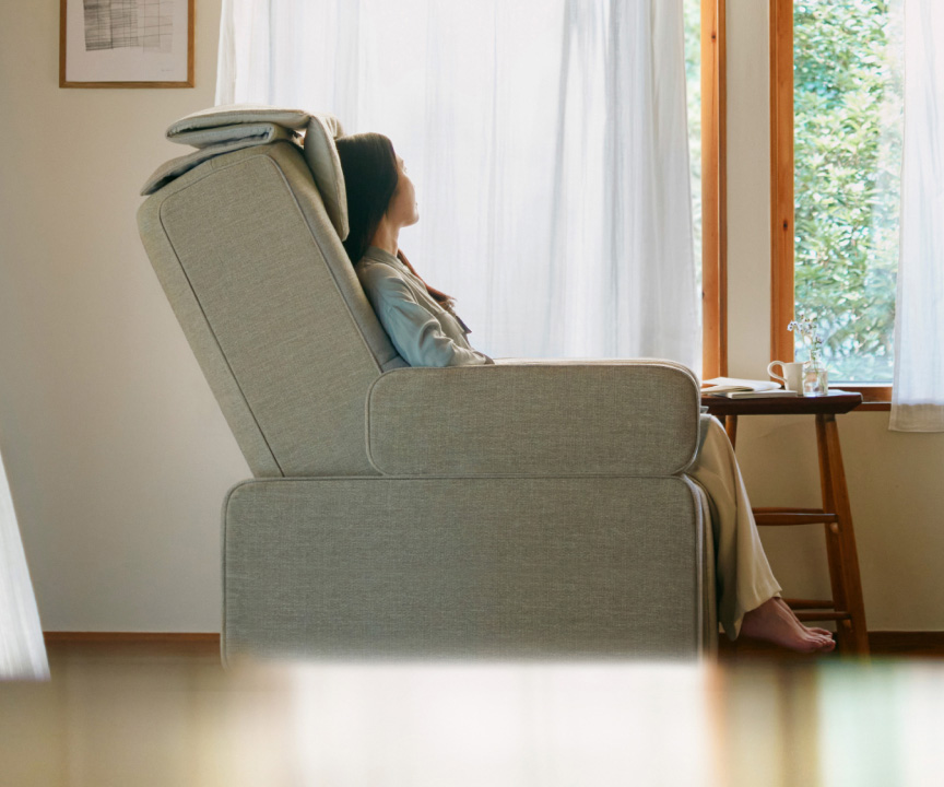 日常の空間になじみ、スリムなボディで無理なく置けるマッサージチェアです。