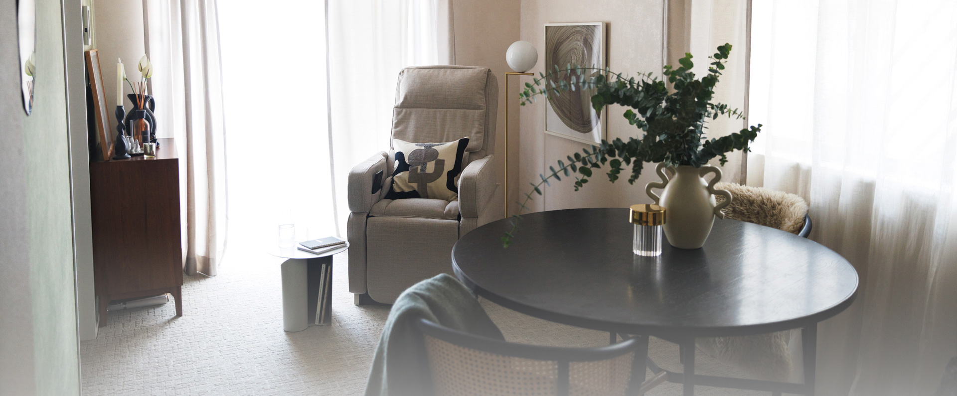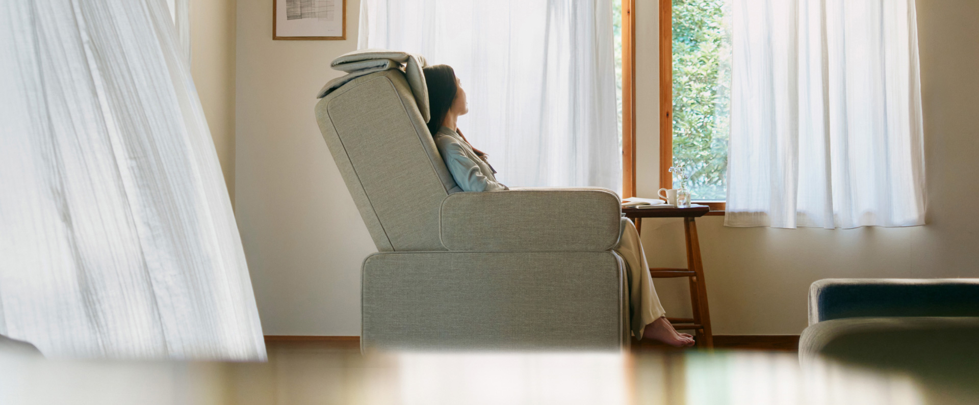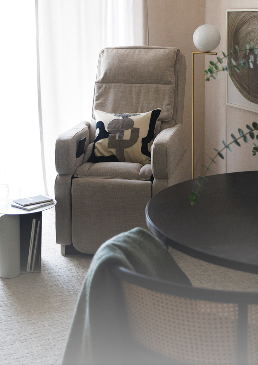 日常の空間になじみ、スリムなボディで無理なく置けるマッサージチェアです。