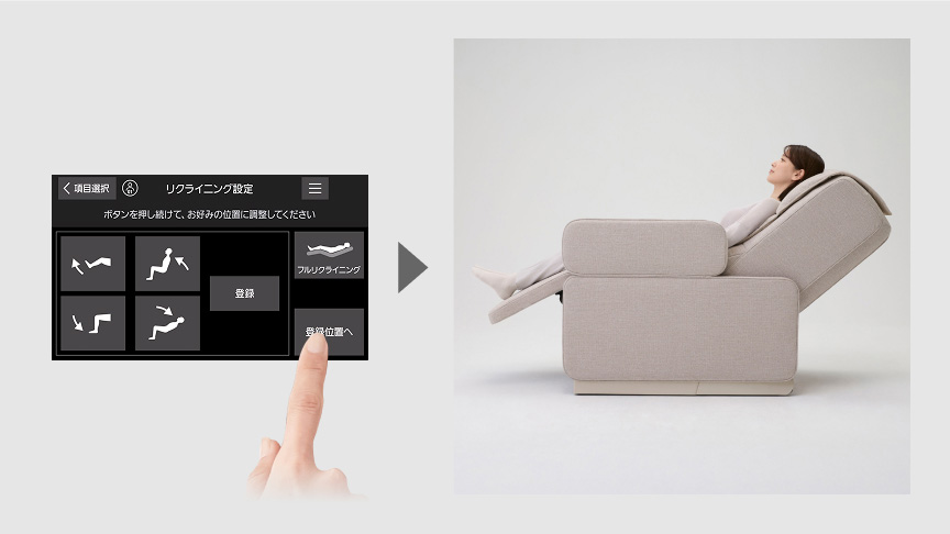 事前に登録すれば、ボタンひとつでお好みの角度にリクライニング。