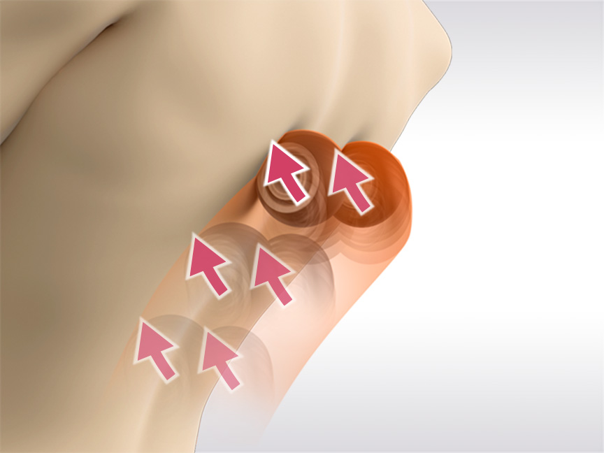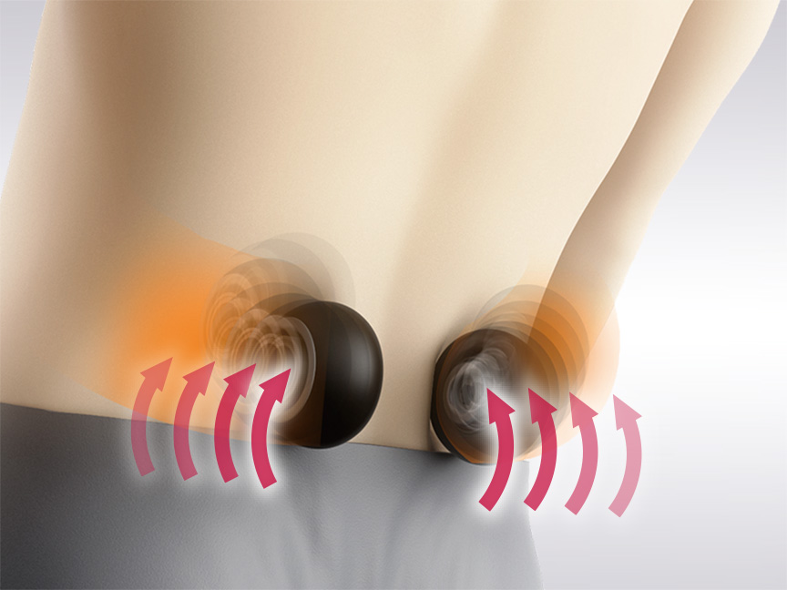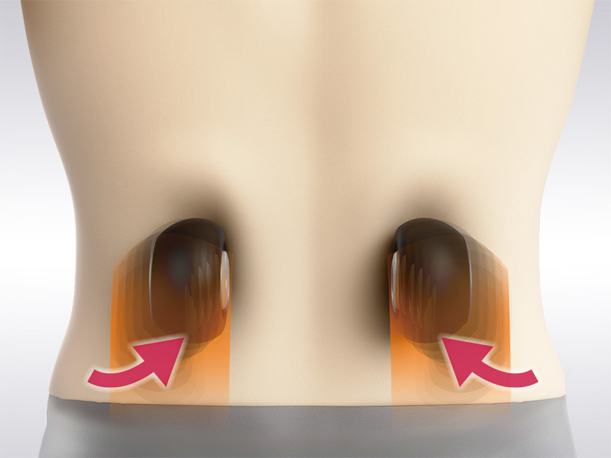 モミ玉の繊細な動きで腰まわり、おしり全体をもみほぐし、しつこい腰、おしりの疲れまでラクに。