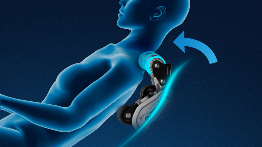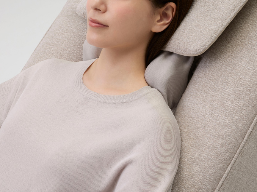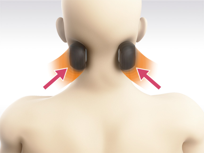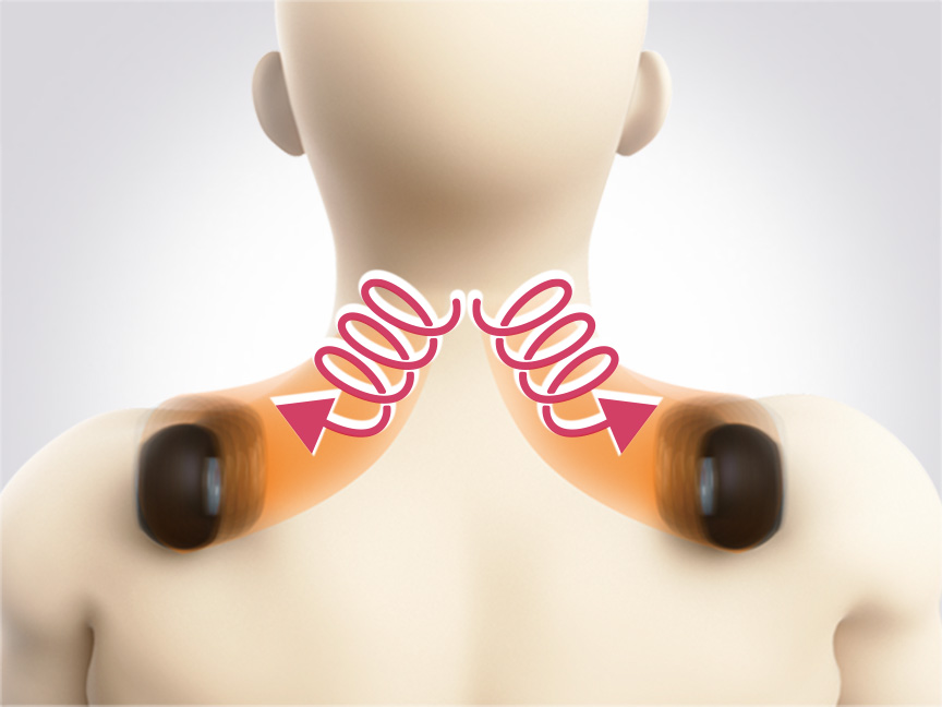 もみ圧センサーのAI制御によるセンシングで肩の位置を特定。個人の身長や体型に応じて的確に肩の上をとらえることができます。