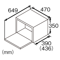 ![]() 幅470 mm×奥行390 mm* ×高さ350 mm * ハンドルなどを入れた最大奥行寸法:436 mm、ドア開放時の奥行寸法:649 mm |