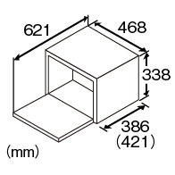 ![]() 幅468 mm×奥行386 mm*×高さ338 mm * ハンドルなどを入れた最大奥行寸法:421 mm、ドア開放時の奥行寸法:621 mm |