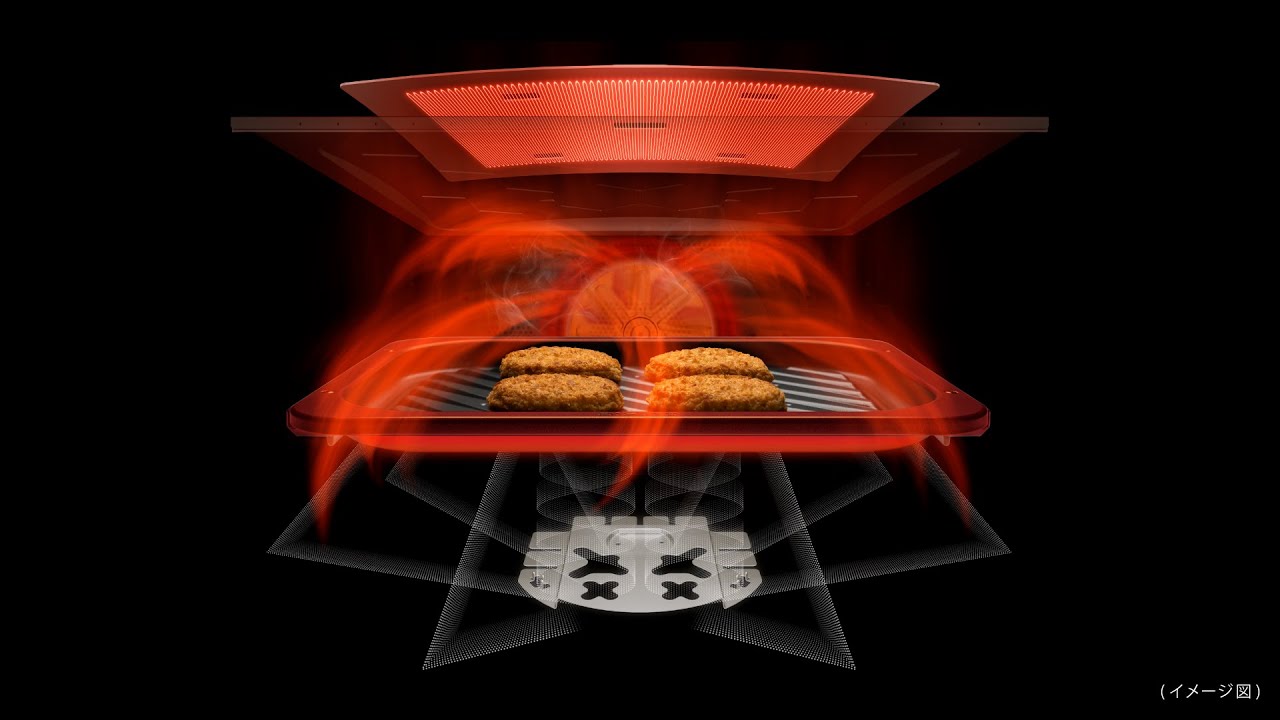 コンベクションヒーターと他の熱源の同時加熱を可能にし、ヒートグリル皿・大火力極め焼きヒーターと合わせて3つの熱源で加熱をコントロール。