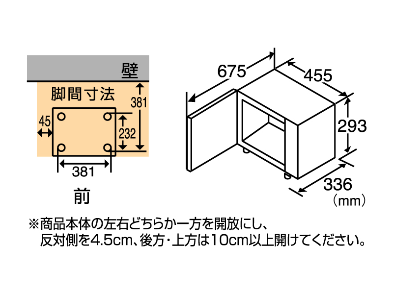 | 消費電力(最大消費電力時) | 1.33kW(オーブンのみ) | ||
