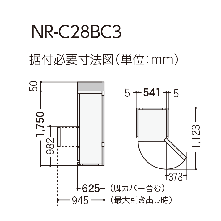 設置搬入時の方向転換に必要なスペースはこの寸法には含みません。