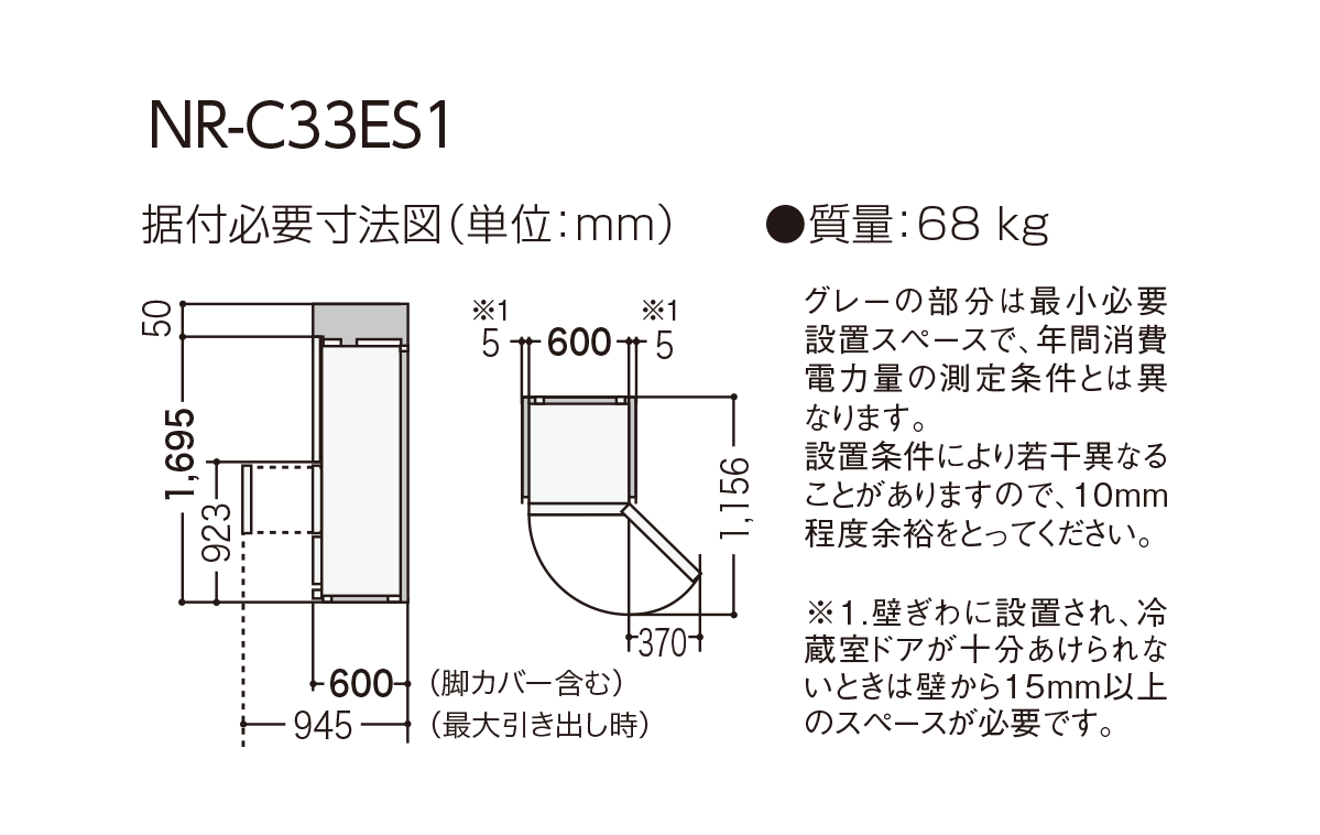 | 年間消費電力量★1 | 50Hz | 322kWh/年 | ||