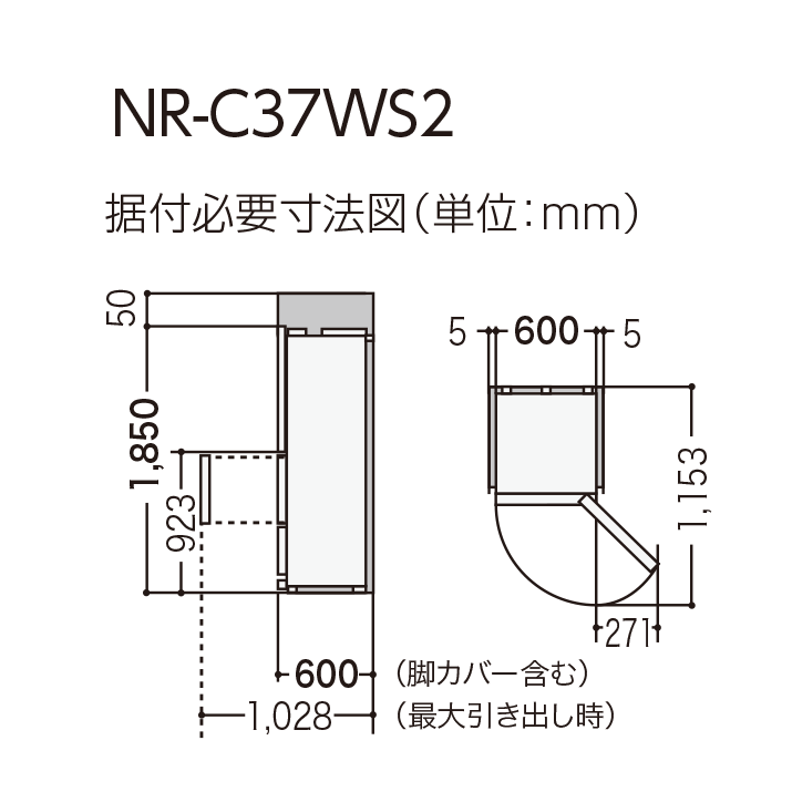 設置搬入時の方向転換に必要なスペースはこの寸法には含みません。