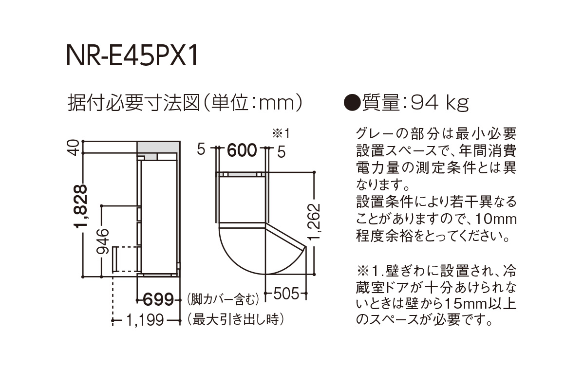 | 据付必要奥行寸法 | 699mm | |||
