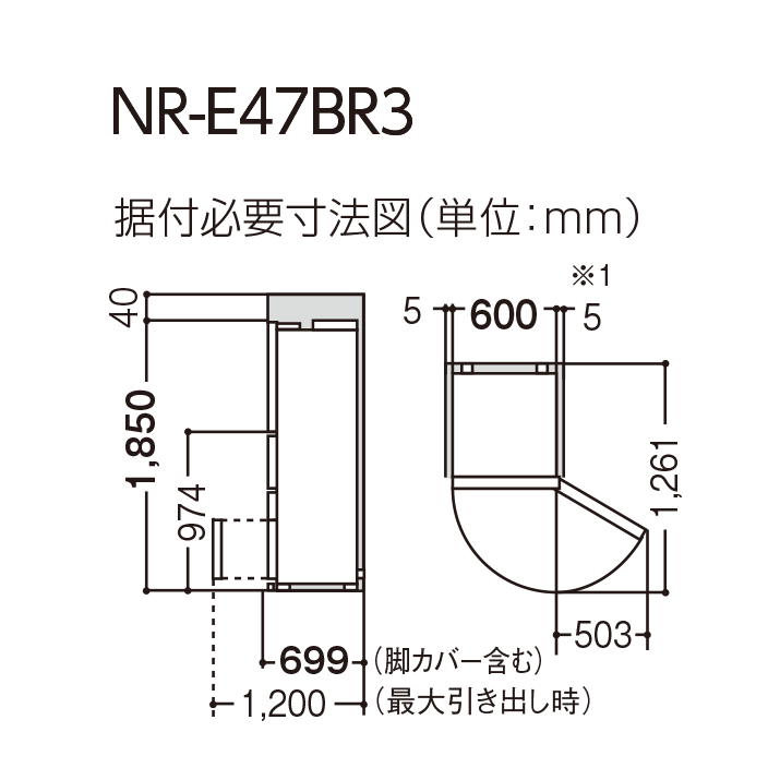 設置条件により若干異なることがありますので、10mm程度余裕をとってください。