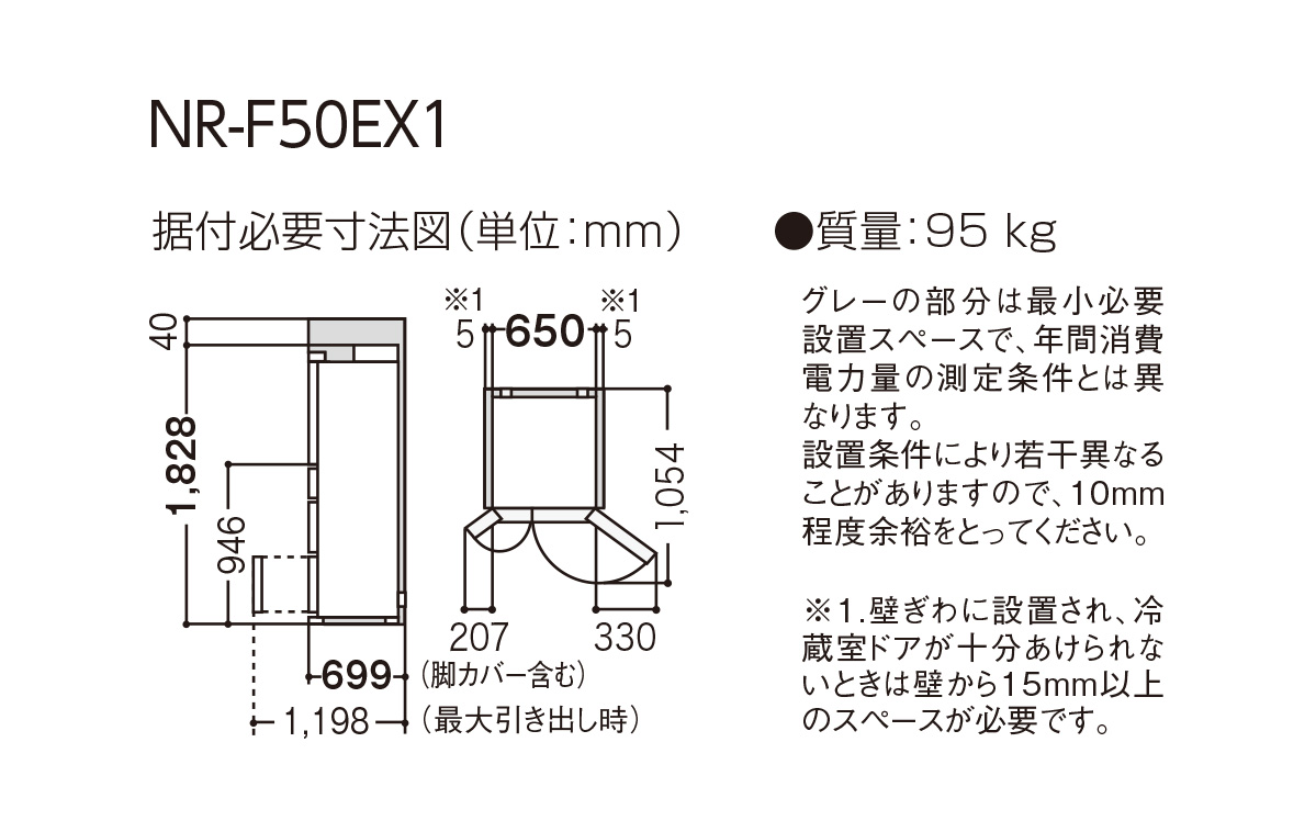 | 年間消費電力量★1 | 50Hz | 279kWh/年 | ||