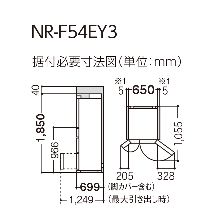 設置条件により若干異なることがありますので、10mm程度余裕をとってください。
