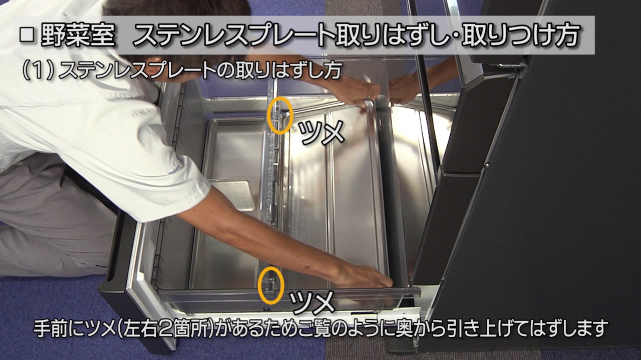 野菜室のステンレスプレートの取り外しかた・取り付けかた(NR-F672WPV)