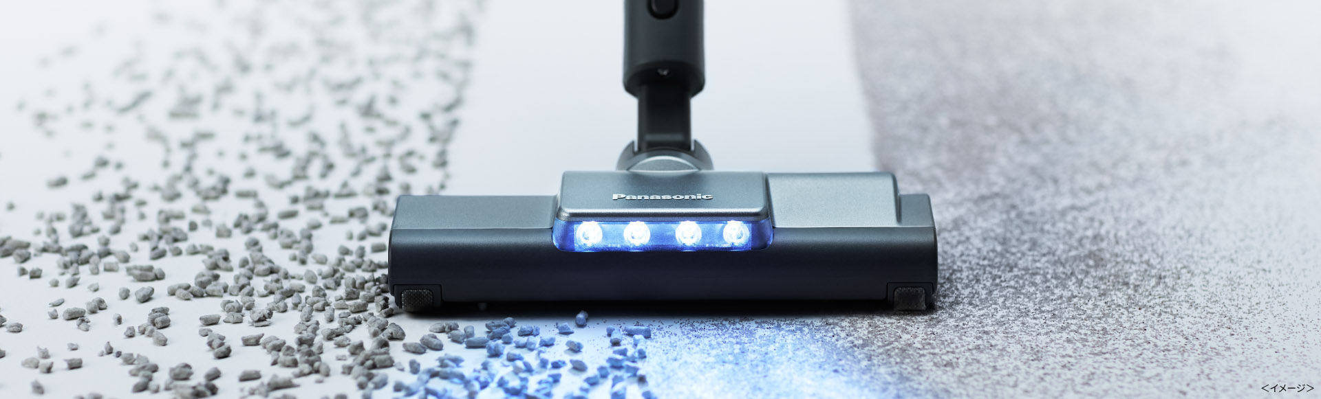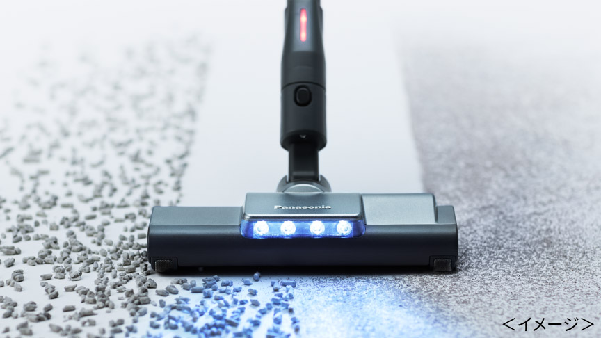 白色LEDで床面を照らし、明るいところでも、見えにくかったゴミを浮かび上がらせて、取り残しを防ぎます。