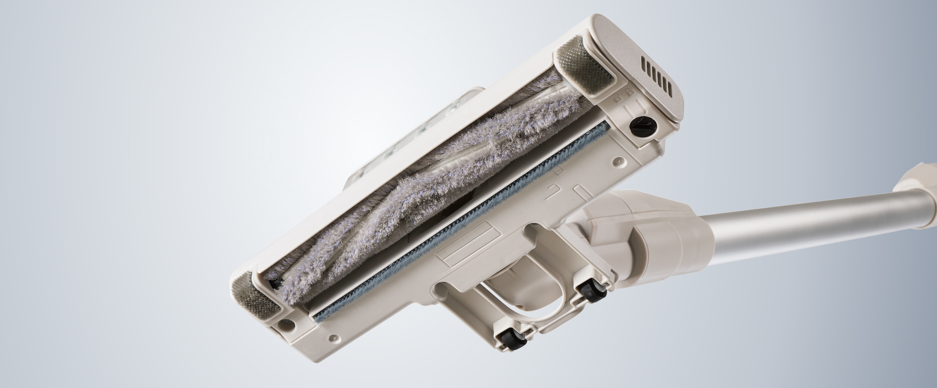 ブラシが壁ぎわまでぴったり届くので、壁ぎわのゴミまでしっかり取りきる。