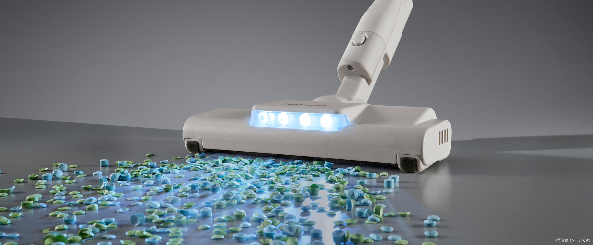 白色LEDで床面を照らし、明るいところでも、見えにくかったゴミを浮かび上がらせて、取り残しを防ぎます。