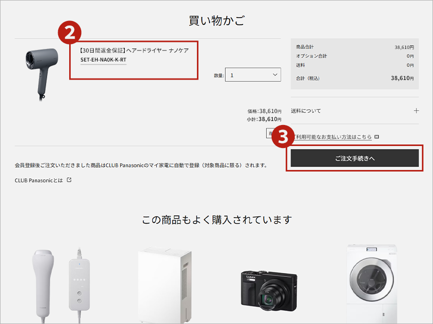 ●ご購入時にCLUB Panasonicコインをご利用された分につきましては、コインでの返金になります。
