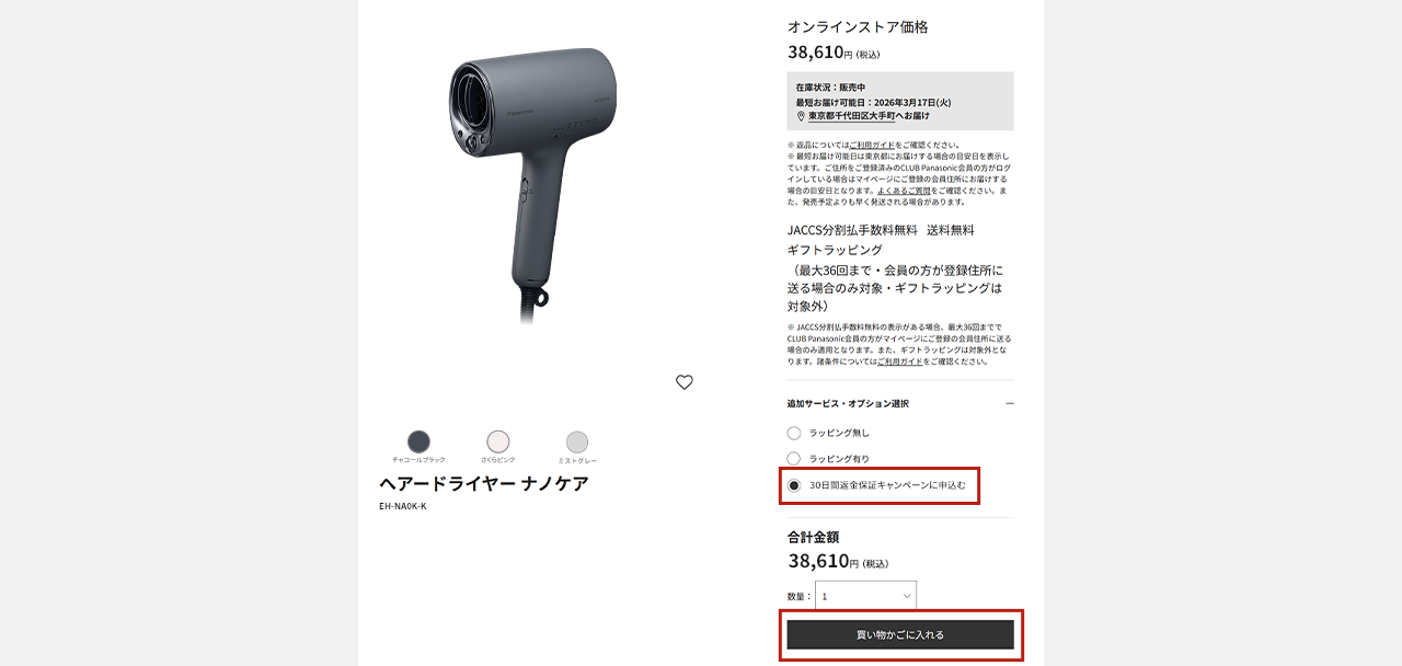 ・対象購入期間内に、Panasonic Store Plusで、対象商品をご購入された方